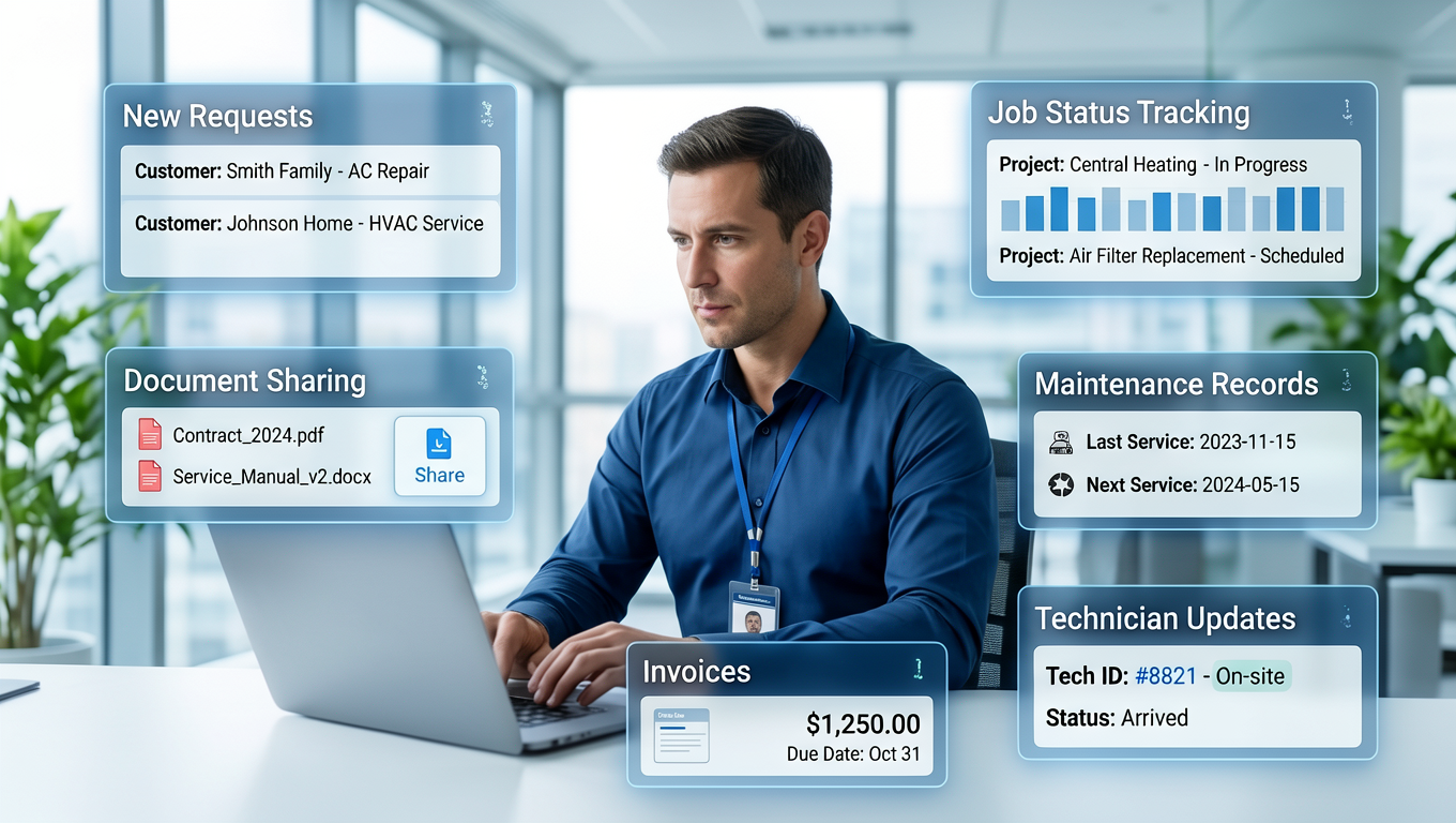 A client portal helps HVAC companies manage service history, documents, approvals, and follow-ups without relying on scattered calls, texts, and email threads.