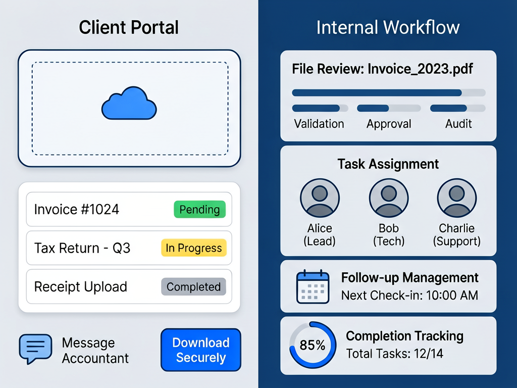 A good accounting client portal should make recurring client interactions easier, reduce back-and-forth communication, and give staff a clearer workflow. It should not become a second full accounting platform.